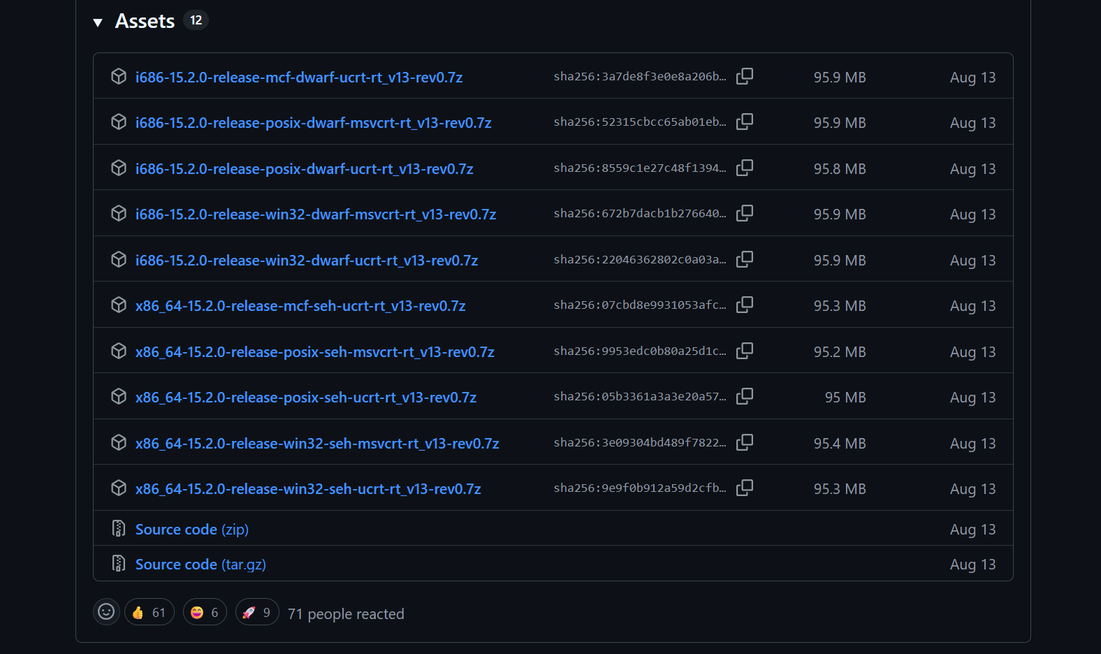 综上,在上图中,现在的大多数电脑应该选择的文件是x86_64-15.2.0-release-posix-seh-ucrt-rt_v13-rev0.7z